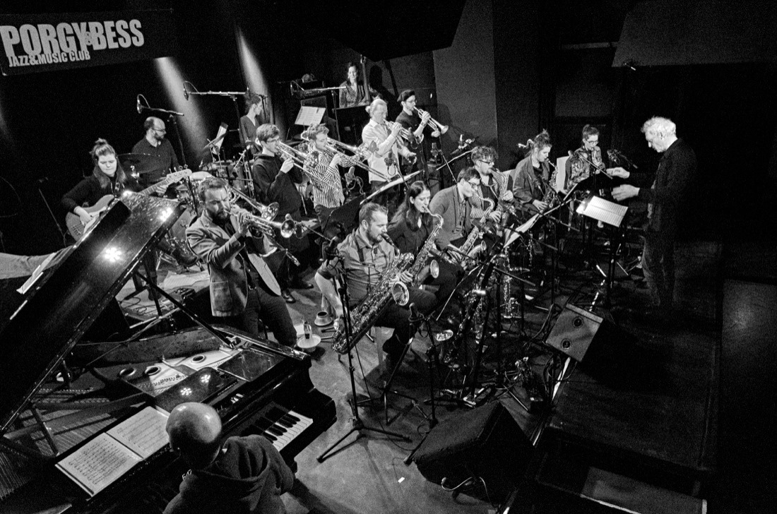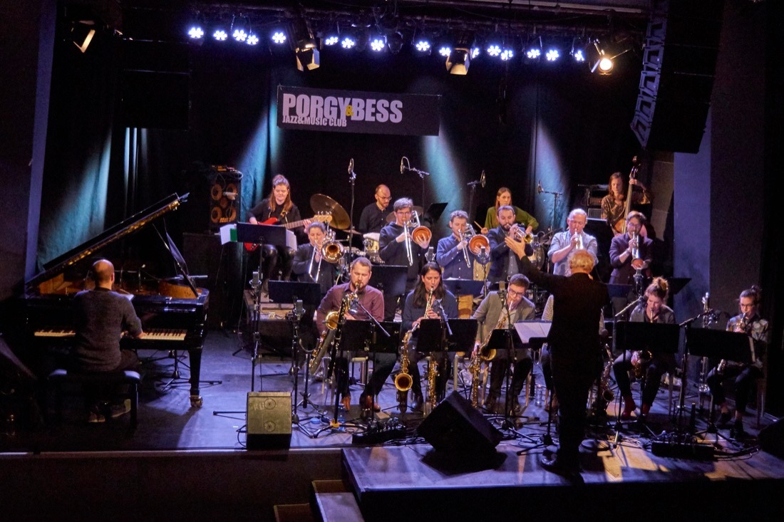 Lisa Hofmanninger, Astrid Wiesinger, Ilse Riedler, Fabian Rucker, Robert Unterköfler, Florian Bauer (reeds), Gerhard Ornig, Dominik Fuss, Lorenz Raab, Alois Eberl, Daniel Holzleitner, Christina Baumfried (brass), Philipp Nykrin (p), Beate Wiesinger (e-b), Judith Ferstl (acc-b), Judith Schwarz, Marton Juhasz (dr, perc), Christian Muthspiel (cond, composition, musical director)
