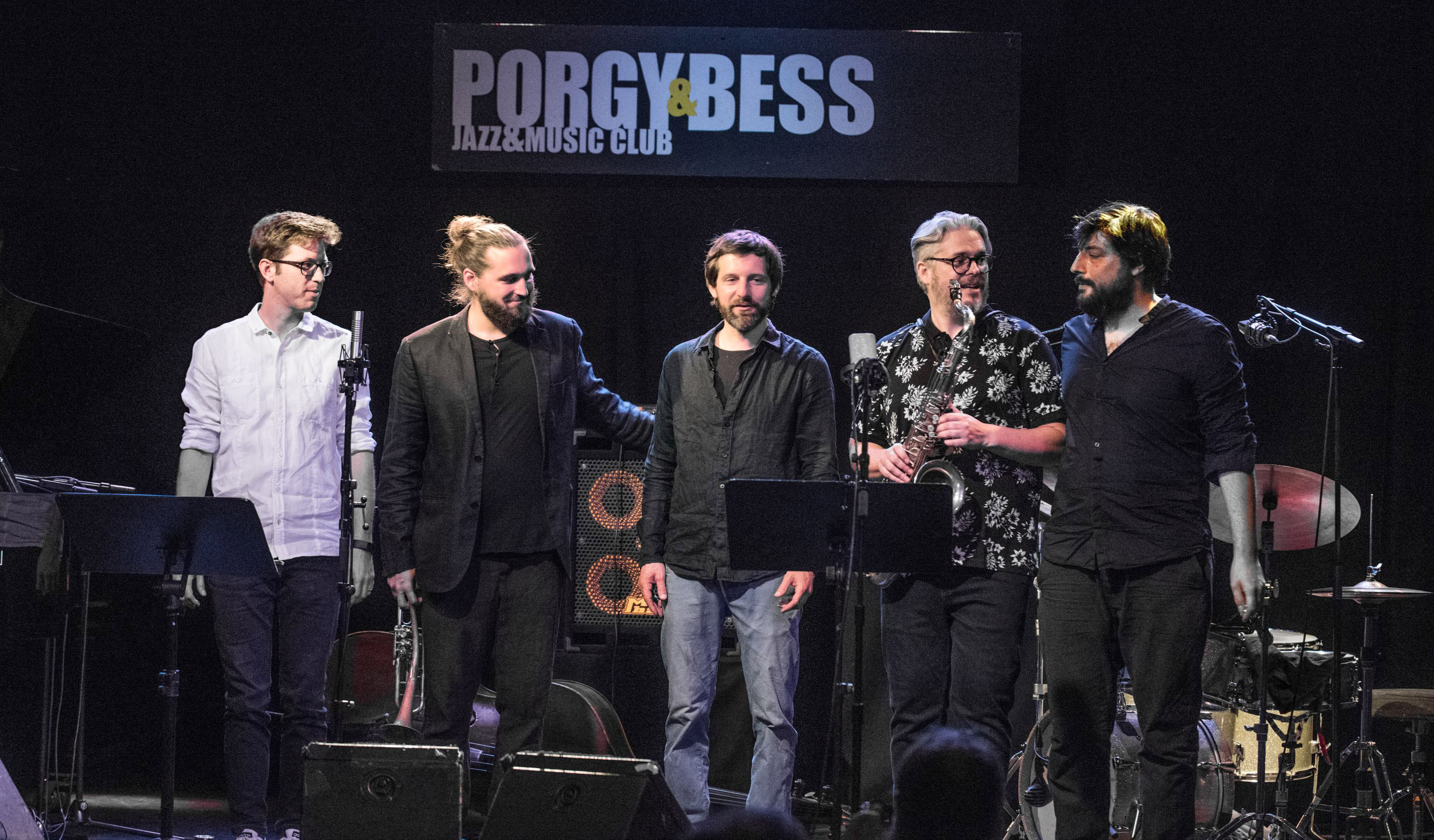 Eine balladeske Stimmung nahm vom Raum Besitz. Die Bläser verströmten melodische Sinnfälligkeiten, umspielten einander mit kontrapunktischer Sophistication. Harmonisch/rhythmisch reduktionistisch, klangfarbentupfend verlief die anreichernde Umgebungsgestaltung der Rhythmusgruppen-Freunde. Die hierorts bereits ihr großes Geschick für ungerade Taktarten und polyrhythmische Wandelbarkeiten anklingen ließen, welchem sie in folgenden Up-Tempo Macharten euphorisch auslebten. Pianist Jagschitz erzielte mit kontinuierlich eingesetzten repetitiven Akkordgruppierungen, sehrwohl ist er zudem ein findiger Improvisator den Quintenzirkel ausschöpfend, hypnotische Momente deren Wirkkraft Niki Dolp, ein Meister konziser, suggestiver Rhythmus Pattern, mit seinem Drumming noch steigerte. Die nötige Erdung lang in den kompetenten Händen des Bassisten. Das gab den beiden Primärsolisten entsprechend Auftrieb und Gelöstheit. Mario Rom spielte abermals in fassungsloser Verfassung, modulierte nach Belieben, tauchte die Temperiertheit dann und wann gleichsam in ein Geräuschbouquet. Kaum weniger originell zog Zangerle querbeet durch die Skalen. Mit ausgesprochen persönlichem, massivem Ton. Wunderbar ausbalanciert war auch das Stimmungsverhältnis zwischen Kontemplation und Ausgelassenheit. Allesamt sind sie ausgewiesene Jazz-„Passionare“. In dieser Kollektivkonstellation behören die Musiker etablierte Jazzpositionen die näher auf die Hard Bop Stilistik eingehen. Fraglos einer eigenständigen Auffassung eingeschrieben, ausformuliert in Originalkompositionen mit großartigen Thementeilen. Modal weitgefasst, um raffinierte Harmoniefolgen niemals verlegen und in einer überzeugenden Schlüssigkeit der Form gebündelt. Ausreichend flexibel um für die Solisten genügend offenstehen zu lassen. Das schwang auch in der Individualität eines jeden Phraseologie mit. Somit standen Überraschungen in gehöriger Zahl parat. Wobei auch durchklang das der Freiheitsbegriff im Detail steckt – etwa formalen Exzentriken, die dem grundsätzlich konventionellen Konzept (ebenso hinsichtlich Rollenverteilung) einen anderen feingeschliffenen Drall gaben, wobei eine Spur radikalere Bruchlinien noch bannendere Inhaltlichkeit hervorgerufen hätten. Auch geriet die Geschlossenheit des Bandgefüges/ -sounds gelegentlich ins wanken – wenn die sonst engmaschige Interaktion auseinanderdriftete. Was der Substanz der Musik keinen Abbruch tat. Um nichts weniger entwaffnend die Ehrlichkeit der Musik, da die Musiker uneingeschränkt ihr Erfahrungsrepertoire reflektierten. In diesem Zusammenhang besonders tiefbewegend jene Klangrede, das als Hommage an den kürzlich verstorbenen, umtriebigen Wiener Bassisten Thomas Stempkowski, u.a. Initiator der Konzertreihe Quanten-Kammer für Musik, angelegt war.