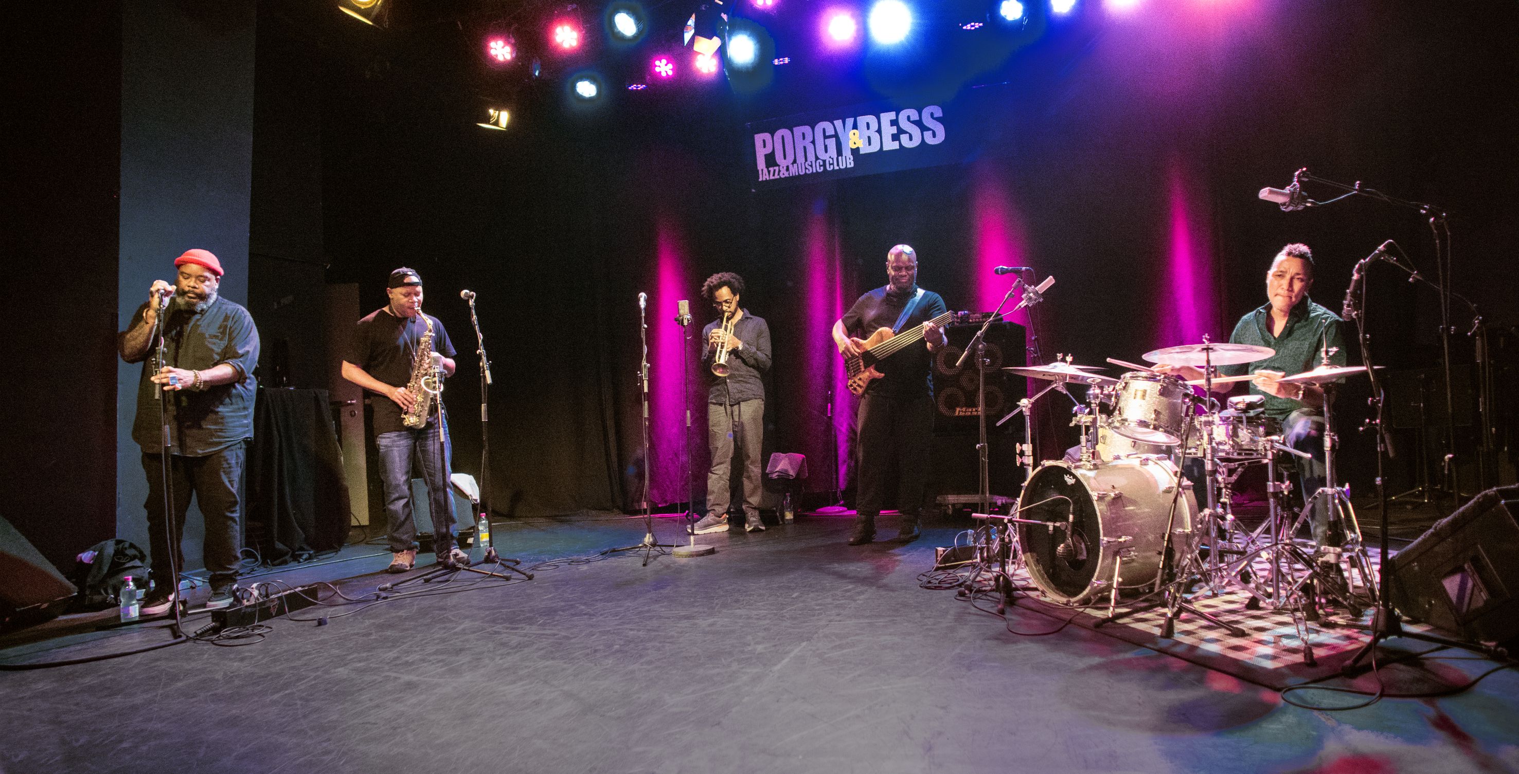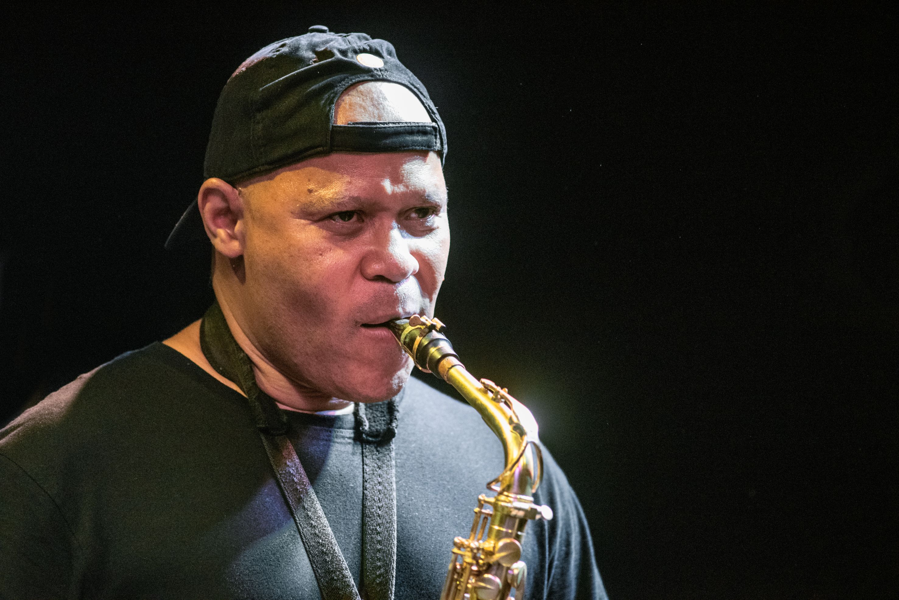 Ebenso auf Traditionsaufarbeitung aufbauend hat ein weiterer hochbegabter afroamerikanischer Musiker namens Steve Coleman mit seinem M-Base Projekt/Kollektiv den Jazz seit den 1990er Jahren, damals vor allem dem marsalischen Neokonservativismus unbeugsame Street Credibility entgegenstemmend, entscheidend vorangetrieben. Seinen freimütig in modalen Gefilden umhergeisternden Neo-Bop hat Coleman ständig zu afro-amerikanischen Musiken der Zeit, dezidiert avancierten popmusikalischen Strömungen wie HipHop, Rap in Bezug gesetzt und explizit deren Jazzverwurzelungen offengelegt. Am zwingendsten mit seiner Band Five Elements. Jüngst auch in der aktuellen Version. Den anfänglich fetten, üppigen Bandsound hat Coleman über die Jahre deutlich entschlackt. Die Grundfesten jetzt, bildet ein harmonieinstrumentebefreites Quartett, das um einen Spoken Word Künstler/ Rapper erweitert wurde. Dieser Kokayi bezeichnet sich und seine Fertigkeit als wordsmith. „Wortschmied“ also – welch origineller Befund. Als solcher hat er eine sehr spezielle Ausdrucksform in einer Gemengelage aus Free-Style-Rap, Scaten, Soul-Voice und Rezitation geschmiedet. Nicht das er mit seinen Beiträgen, wie im Rap herkömmlicherweise konzipiert, als Frontman mit Instrumental-Backup fungierte. Kokayi ist ebenbürtige Stimme in Colemans ausgeklügeltem Modell. Dem Modell in dem sich der improvisatorische Freiheitsgedanke und Formbewusstsein die Waage halten. Letzteres betreffend, mit einer ganz starken Gewichtung der melodischen, und noch deutlicher, rhythmischen Komponente. Das Konzept ging an diesem Abend vollends auf. Zumeist leitete der Saxophonist die kompakten Stücke entweder mit lyrischen, singbaren unbegleiteten Soli oder eingängigen melodie-rhythmischen Pattern ein. Im weiteren lösten diese unbändige Rhythmusstränge aus. Fulminant weitergetrieben von Bass und Schlagzeug – eindrucksvoll wie die beiden verantwortlichen Akteure genauso solistisch das Fundament zum Beben brachten. Bassist Tidd mischte zudem noch ganz persönliche melodische Fantasien hinzu. Engverschränkt entwickelte sich ein verschachteltes Szenario. Aperiodische Akzentuierungsstrukturen, ungerade Metren zogen unentwegt rhythmische Überlagerungen, Verschiebungen nach sich. Einen hohen Komplexitätsgrad erreichend. Hinzu setzten Coleman und Trompeter Finlayson kontrapunktische Glanzlichter. In Call & Response Sequenzen, feixenden Off-Beat Sprudlereien, versetzten repetitiven Markierungen oder mit tiefempfundenen Soloflügen. Bemerkenswert zudem die verwinkelten Unisono Passagen von Stimme und Bläsern. Jedem der beiden in Phrasierung, Intonation, Ton das Seine. Dem „Wortschmied“ wiederum kamen atemberaubend gerappte, gescatete Wortimprovisationen über die Lippen, die er ebenso als melodischen Linien in den Schaffensakt einzog. Nie verlor dieses immense, spiellaunige Gebräu an Funkyness und Lässigkeit. Die Intension der M-Base Idee, die keinen Stil beschreibt, zielt auf eine ständiges Wachsen durch Kreativität ab. Der Musik wie dem Menschsein zugedacht, so proklamiert es Steve Coleman. Diesem Wachsen zuzuhören rührte Herz und Seele. Coleman und sein Umfeld sind gestern wie heute ein maßgeblicher Faktor betreffend der Verklanglichung der afrikanischen(schwarzen) Linie im Jazz. Black Music forces.