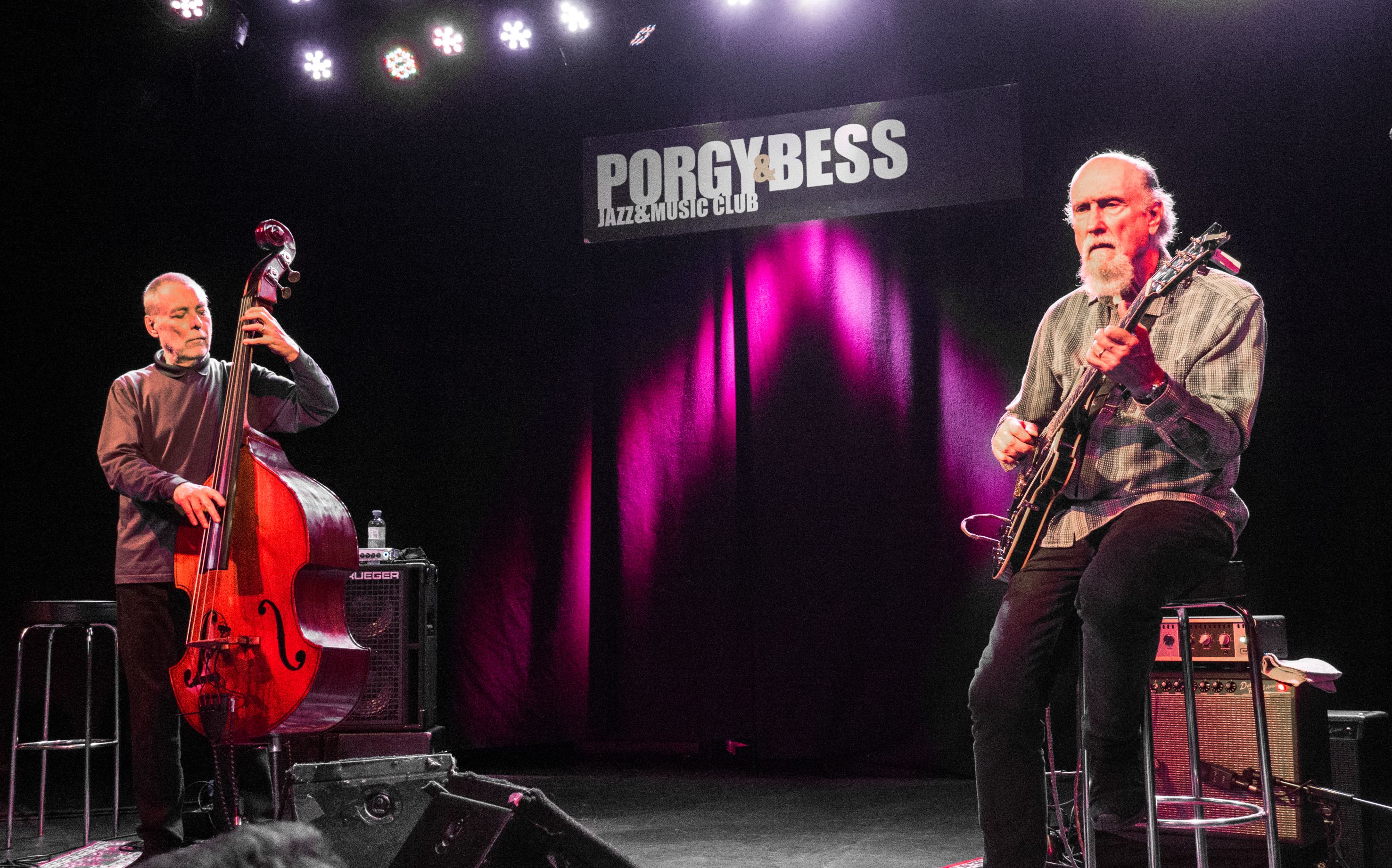 Ein, zwei, drei chromatische Laid Back-Akkorde, eine klare Intervallik eingeschrieben, geformt mit trockenem, kantigem Ton, legten den Grundstein des Spannungsverhältnisses dessen Magnetismus einen bis zum Finale in Ergriffenheit hielt. Umso mehr durch das sensorische Eingreifen simpler, herzblutiger Melodiegesten, die im weiteren Erfindungsprozess zu komplexen Verzahnungen reiften. Frappant dabei die durchdringende Natürlichkeit. Dave Holland und John Scofield, zwei herausragende Sendboten des Jazz der letzten 50 Jahre, gaben für ihre Zwiegespräche Stimmungen im Balladenton den Vorzug. Großer Freudentaumel überkam sie dabei, der auch die Spiellaune entsprechend emporschraubte und ein völlig entspanntes Interagieren nach sich zog. Hollands voluminös warmer Ton bündelte sich in eingängigen Ostinatofiguren, impulsiven Walking-Linien, straighten Hooklines. Immer auf den Beat bezugnehmend. Die Musik in Bewegung haltend und mit Sounds bereichernd. Changes erhalten in seinem Spiel einen enormen melodischen Reichtum und rhythmische Kohärenz. Und seine wohldosierten Ornamentierungen faszinierten. Weniger als Single-Note Zauberer als vielmehr unerschöpflicher Aufspürer von detailreichen, einer inneren Logik folgenden Akkordprogressionen implantierte Scofield das Seine in die Tondichtungen. Zudem waren da noch seine famosen Off-Beat Einsprengsel. Beider größter gemeinsamer Nenner könnte so definiert sein: spontaner Melodienkreateur (Holland) trifft auf ad hoc-begnadeten Harmoniearchitekten (Scofield). Unaufgeregtheit und Uneitelkeit sind in dieser musikalischen Gesprächigkeit/Erzählkunst gleichfalls eine Zier. Was Scofield und Holland klarstellen, Jazz ist ein Klima der Freiheit, der Selbstbefreiung und Emanzipation von autoritären Banden, dass er die aufregendsten Prinzipien existentieller Freiheit enthält. Unverfälschte Wahrhaftigkeit stellen die Musiker dahinter, sowie Geradlinigkeit und Evidenz - entwaffnend direkt am Leben. Ihre Klangkomplexe beleuchten mit Neugierde das tradierte Jazznaturell. Wiewohl Funktionsharmonisches und tonale Gebundenheit auch dezent ausfransten. Besonders das Lyrische lag ihnen ausdrücklich am Herzen. In Form der Durcharbeitung einfacher Melodien, der Ergründung des Stimmungshaften, eines bodenhaftenden Schwebezustandes. Beispielhaft standen dafür die Holland Komposition „Homecoming“ und jene von Scofield „Time And Tide“. Vergnügen bereitete auch das kurze Abbiegen in angeschrägte Americana: „New Country with two old men“. Eingewoben ist, alles bündelnd, rhythmisch raffinierte, swingende Leichtigkeit. Genau diese Qualitäten in der Musik ziehen die Menschen auf´s direkteste hinein. Das Jazzuniversum auf zehn Saiten und gefühlt war man sich eines neuen Instrumentes gewahr: der „Kontrabass-Gitarre“. Schlichtweg erhaben schöne Musik, deren Hervorbringung wiederum mit dem Porgy & Bess- Ambiente in Bezug stand.
