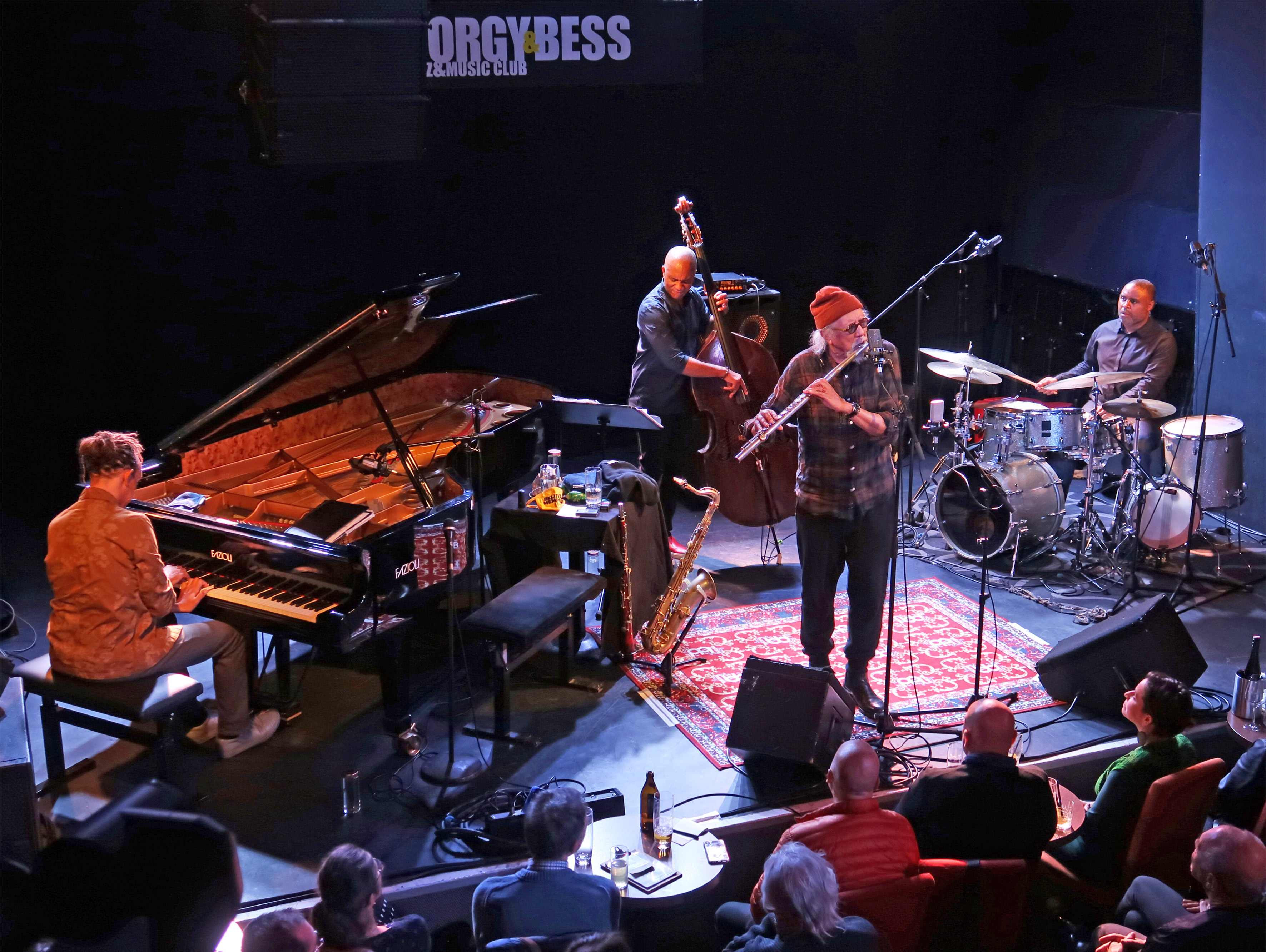 “Wenn du nicht die spirituelle Seite dazunimmst, dann, glaube ich, ist Jazz heute nicht mehr vollständig.” äußerte einmal der große Schlagzeug-Altmeister Albert Heath. Spiritualität als weiterer Quell musikalischer Kreativität ist für Jazzmusiker, seit der ergründenden Auseinander mit afrikanischen und asiatischen Musiktraditionen, die mit der Bebop-Evolution ihren Anfang nahm, ein bedeutender Fakt. John Coltrane war der erste, in Verbindung mit seiner tiefen Religiosität, der dieses spirituelle Bewusstsein in seiner Musik in völliger Hingabe auslebte. Die wohlbekannten dahingehenden Manifestationen seiner letzten Lebensjahre sprechen für sich. Ein Musiker, den dieser Zugang, diese transzendente Intensität stark beeinflusste und der daraus eine solitär eigene musikalische Wesenheit und Kraft generierte ist Charles Lloyd. Erste Bekundungen und Impulse zeigten sich bereits während seiner Mitgliedschaft in den Bands von Chico Hamilton und Cannonball Adderley zu Beginn der 1960er Jahre. Rigorose Strahlkraft entwickelte er in seinem legendären Quartett mit Jarrett, DeJohnette, McBee/McClure. Hinzukam, dass er eine wegweisende Gemengelage aus Jazz, Rock und Endsechzigerjahre Hippie-Folk aus der Taufe hob. Doch seit jeher dreht sich das Primärgeschehen um den Sound. Den Sound seines Saxophones, den Sound der Gruppe. Seine lange währende Reise durch die Musik führte ihn immer direkter an den Ursache-, Auslösungsnukleus. Lloyd spricht vom Ton der destillierten Essenz und einer Qualität der Klarheit. Mit welch eigentlich nicht erklärbaren, nicht mehr steigerbaren Güte er dies in Schwingungen umsetzt, ließ er auch an diesem Abend abermals ausreifen. Die um vieles jüngeren Partner des Saxophonisten, sie sind Teil der meisterlichen Riege des heutigen afroamerikanischen Jazzpluralismus, geben diesem Lloydschen Qualitätsstatus einen weiteren Vitaminschub. Eine Tatsache „universellen“ Miteinander-Verflochtenseins. Es war eine Begegnung des Vollendeten. Der 83jährige Musiker frönte expressivst einem kreativen Unruhezustand. Bestimmender Grundzug der Musik war jener einer Sanftmut, die Lloyd in einzigartiger Weise aus seinem Horn strömen lässt. Fernab jeglicher Süßlichkeit, jeglichen Lamentos. Eine Sanftmut von empathischer Wärme und humanistischer Größe, aber eben auch mit Mut zu energischen Entäußerungen und Klangfarbenexplorationen. In völliger Ausgeglichenheit. Lloyd kanalisiert seine Musik in linearer Ereignishaftigkeit, treibt die Funktionsharmonik von motivischen Vorgaben – „Dream Weaver“, „Passin´ Thru“ - an die tonalen Grenzen, überlässt Formen ab und an einer entbundenen Momententwicklung. Seine Improvisationen werden immer straffer, vertiefter. Man tendiert plötzlich dazu Übersinnliches zu deuten. Einer Ritze im Universum entsteigt ein vollendeter Klang, der durch den Saxophonisten strömt. Der vermittelt ihn lediglich – ausformend. Aber es bleibt irdisch, denn das Jazz-Erbgut ist der Spender. Und jeder der Musiker tauchte durch seinen persönlichen Empfindungspunkt die Musik in eine speziell illuminierende Aura. Clayton und Rogers mit einem unfassbaren harmonisch/melodischen Fantasmus. Kendrick Scott, dessen Schlagzeugkunst ein Füllhorn an rhythmisch/metrischer Variabilität gepaart mit zündenden Tempowechseln und Akzentuierungsverschiebungen ausschüttete, war der kinetische Herzmuskel. Zusammengezogen in einem grandiosen Interplay, dessen Nervenbahnen sich in Lloyds Spiel bündelten. Der spielt immer weniger, aber es entsteht immer mehr Musik. The Water is Wide.