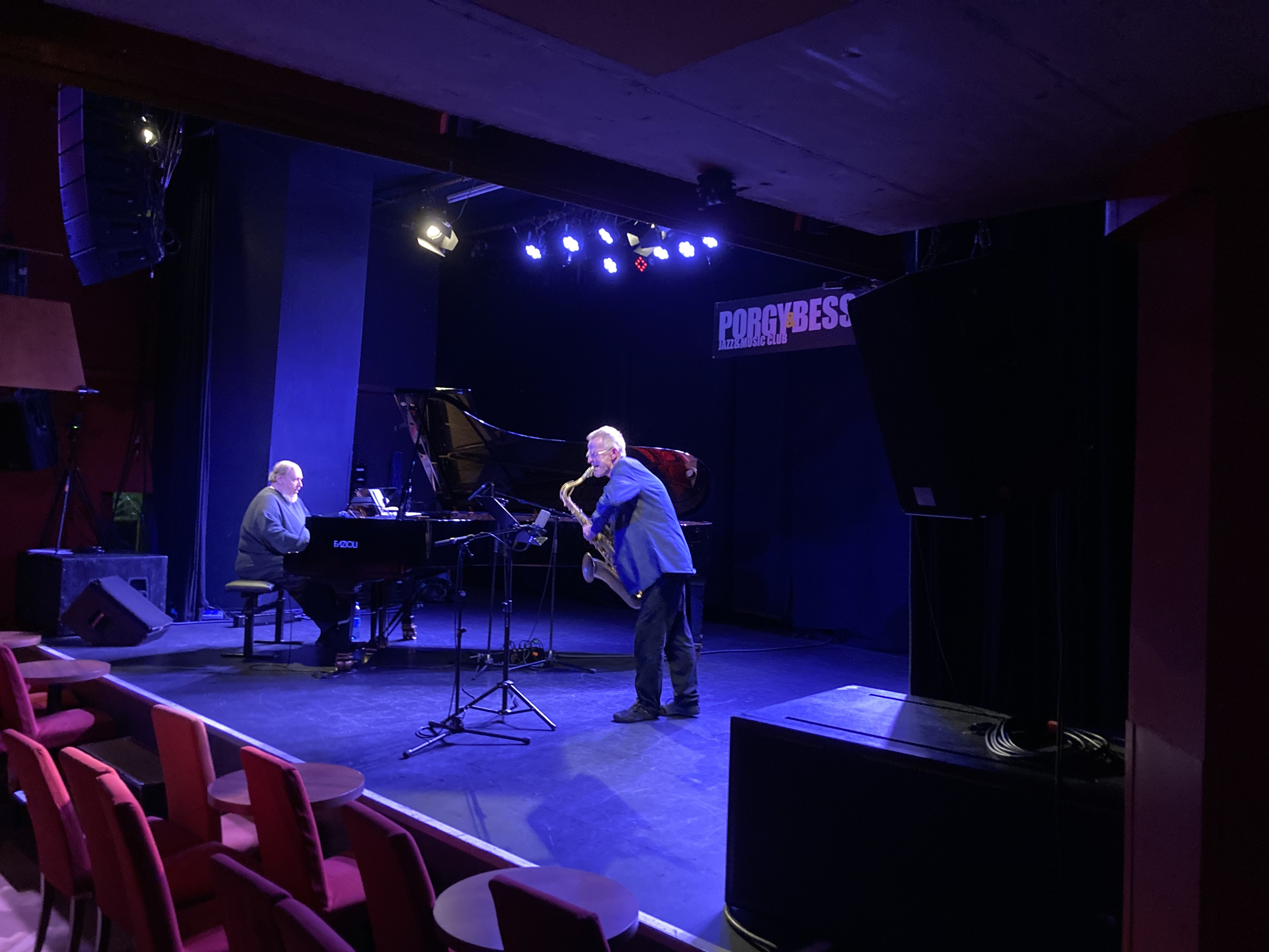 Der mit größter “Umsicht & Verantwortung” neuerlich generell verhängte pandemiebedingte Lockdown, Dank an die politischen türkis-grünen Verfärbungen, kann aber die Verlockungen der Musik nicht hintanhalten. Das ist gut so. Und die MusikerInnen lassen sich weitestgehend nicht von diesen Widrigkeiten abhalten ihre brennende Leidenschaft weiterhin auf Bühnen zu entäußern. Und das Porgy & Bess wird nicht müde diese in die Welt hinauszustreamen. Um zu verdeutlichen was das heißen kann: Die beiden Musiker die an diesem Abend vor leerem Haus konzertierten, reisten dafür extra aus Köln an. Rufzeichen. Unvermindert waren Energie und Intensität des Schaffensprozesses. Beide Protagonisten sind seit Jahrzehnten Persönlichkeiten mit gewichtiger Stimme in der europäischen/speziell deutschen Jazz-Avantgarde. Unverständlicher Weise wird ihnen trotz höchsten künstlerischen Anspruchs seitens der Rezeption viel zu wenig Beachtung zuteil. Jedoch uneingeschränkt geschätzte Musiker unter KollegInnen. Davon zeugen die unzähligen nationalen und internationalen Kooperationen in denen Schubert und Nabatov mit MusikerInnen wie u.a. Albert Mangelsdorff, Graham Collier, Harry Pepl, Tomasz Stanko, Jeanne Lee, Gunther Hampel, Kenny Wheeler, Ray Anderson, Attila Zoller, Steve Lacy, Billy Hart und, und, und zusammentrafen. Ohne Protzerei legte Matthias Schubert offen, dass er das Tenorsaxophon in allen Registern beherrscht, jegliche jazzgeschichtliche Errungenschaft in seinem Spiel vereint, persönlich ausdeutet und in eigene Ereigniswelten klanglich, phrasierend, intonierend überträgt. Unter Einbezug perfektionierter geräuscherweiterter Spieltechniken die schnarrende Spaltklänge, fauchende Luftsäulen, oder polyphone Klangsequenzen, die z.B. „Nur das Summen einer Fliege“ implizieren, umfassen. Von hervorstechendem Ton getragen. Wie Schubert, gleiches gilt auch für Nabatov, den Jazz-Traditionsbegriff auslegt, ist dieser eben umfassend. Von Hawkins-Novitäten zu Sanders-Novitäten auf afroamerikanischer Seite, von Koller-Novitäten zu Evan Parker-Novitäten auf europäischer Seite. Eine seltenen stimmige Fusion eingehend, verdinglichen sich jene beiden Stränge bei ihm. Fußend auf freigeistiger Autorität, untermauert mit physischer Aktivität – als Steigerung der Körperlichkeit. Außerdem zündelt die generell stakkatierende Phrasierung des Saxophonisten wunderbar mit rhythmischer Impulsivität. Das spielt Nabatov perfekt in die Hände. Er, eine rhythmische Kreativnatur. Anhand bemerkenswerter Anschlagkultur, ließ der Pianist einfache rhythmische Periodizität mit komplex gebauten Polymetrien verschwimmen. Als dramaturgisch immanente Reibungen eingepflanzt. Verschwenderisch baute Nabatov darüber eine harmonische Pracht. Zwischen unorthodoxen Fortschreitungen und singbaren Konsonanzen, zerlegt in Arpeggien oder komprimierten Blockakkorden, hin und her tastend. Das wiederum spendete Input für Schuberts melodisch-klangliche, kalkulierte Loslösungen. Dem stand im sensiblen Zusammenspiel die Polarität von Massivität und Fragilität gegenüber. Auch das Spiel mit den Pausen wurde zu großer Kunst. Ausgeklügelt war gleichsam der kompositorische Anteil der Musik, fast gänzlich den Ausführenden zuzuschreiben, der allem Eindruck nach einen großen Anteil bestritt. In komplex verwinkelten Strukturen, einer gebrochenen Motorik angediehen, wurde die Ereignishaftigkeit „ausgeklappt“ und „klaviaturiert“. Eine intuitive Unbeschwertheit haftete dem Handeln der Musiker dabei ständig an. Allerdings mit demselben Impetus wurde die Musik improvisatorisch zur Reife gebracht. Es gab jedoch keinerlei Separierung zwischen beider Zugänge. Das ist der besonderen Übereinstimmung, der Empathie und menschlichen Generosität, worauf Schubert und Nabatov seit langen vertrauen können, anverdient. Als Schlusspunkt ließen sie noch mit einer herrlichen Version des Herbie Nichols Stückes „House Party starting“ verlauten, wie respektvoll und in Eigensinnigkeit Fremdmaterial gedacht/gefühlt werden kann. Bizarre Melodik/Harmonik geiferte in verschrobener Lyrik. Eine Jazz-Hingabe im Zusammentreffen mit der Sozialisierung europäischer Musiktradition erweckt im gemeinsamen Schaffen von Schubert und Nabatov ein auffallend individuelles Rhizom. In der Verantwortung einer Jazzprogressivität im Hier und Jetzt.