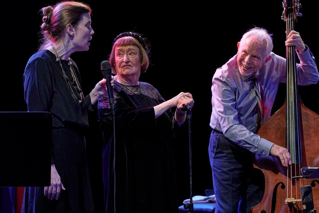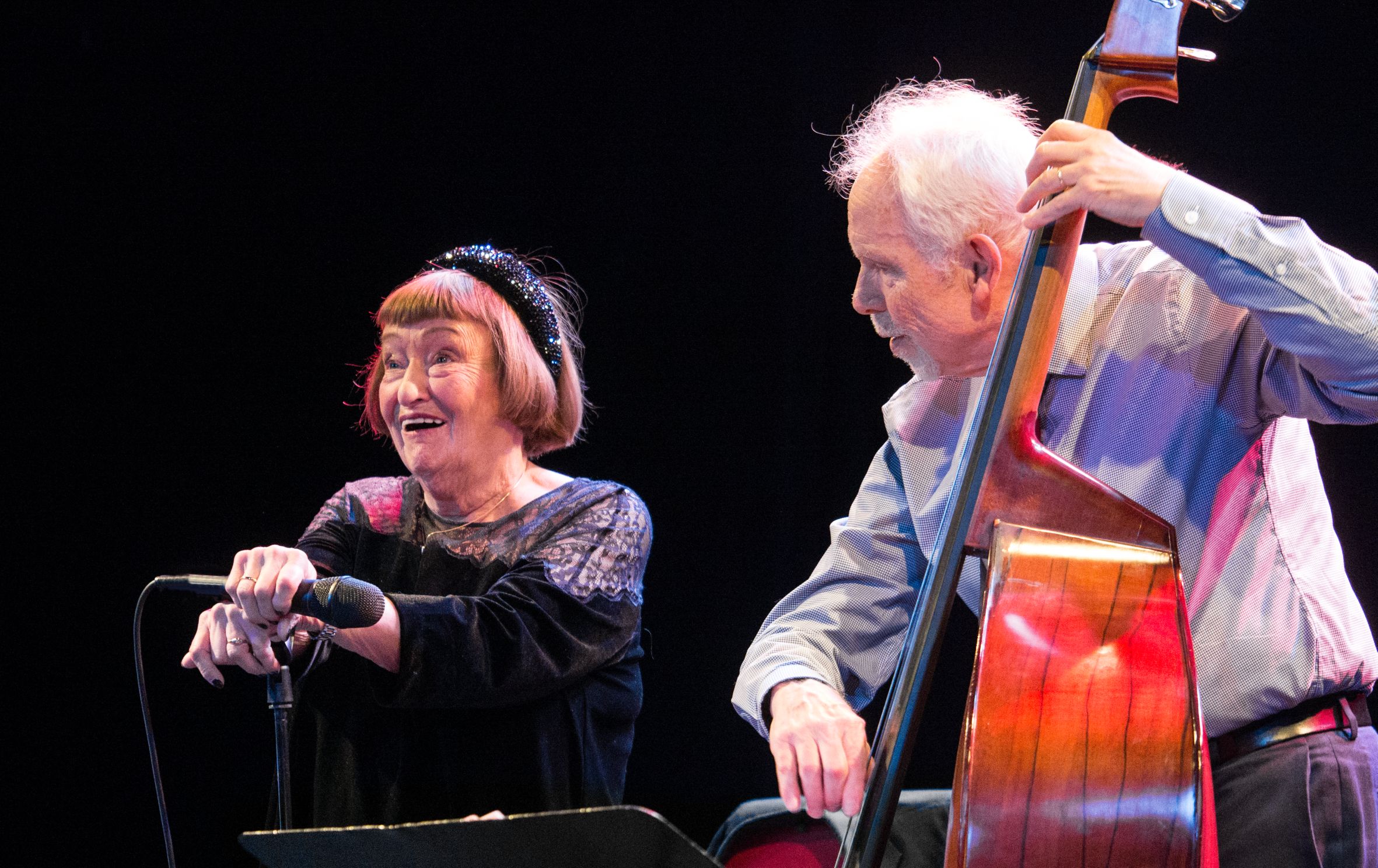 Da kommt schon ausgesprochene Einfühlung ins Spiel, wenn man derart zwingend das melodische und rhythmische Regulärkonzept auf die Essenz einzudampfen fähig ist. Jordan nahm die Melodiefolgen auseinander, improvisierte sie zu aufregend neuen Kontrafakturen. Große Elastizität, klanglich wie rhythmisch, in ihrem signifikant kantigen Timbre anwendend. Erstaunlich die immer noch präsente Kontrolle über die Stimme. Mühelos ließ Jordan ihre Vokalismen vom Alt in den Diskant springen. Leidenschaftlichst, ihre Hingabe an den Augenblick. Gleichermaßen auf großes Intuitionsvermögen gestützt, finalisierte Brown die rhythmische Ausgestaltung. Das waren hier entschlackte, forcierende Walking-Lines, dort unwiderstehliche Ostinate in sparsamer Gestik. Das Melos tanzte ebenso auf seinen Saiten. Darauf gründet sich die stupende Symbiose aus der instrumentalen Stimme und dem singenden Instrument. Das Stück „Let´s Face The Music And Dance“ bot dann noch ein „scatkunstiges“ Zwiegespräch von Sheila Jordan mit einer einstigen Schülerin, der österreichischen Musikerin/Vokalistin Heidi Krenn.