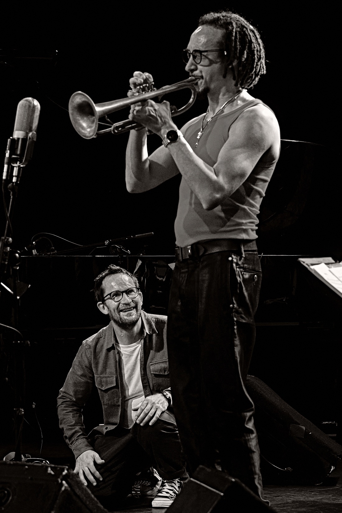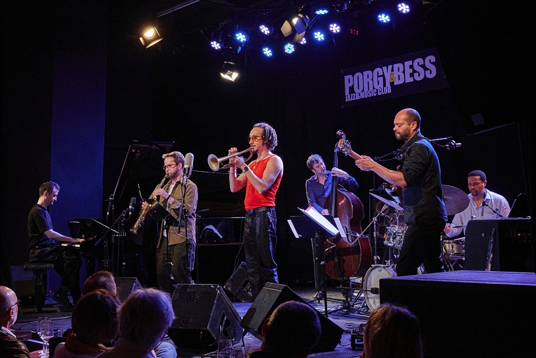 Speziell gefeatured wird der gelobte Theo Croker – Enkel des legendären Oldtime Jazz-Trompeters Doc Cheatham. Er gilt gleichfalls als einer der multidirektional denkenden Jazz-Modernisten der in seiner Gegenwartsposition die schwarze Jazz-Tradition mit populärmusikalischen heutigen Ausdrucksformen der Black Music kurzschließt. Oftmals sehr gelungen wird allgemein konstatiert. In diesem Sextett bewegte er sich konsequent in einem Neo-Bop Umfeld. Croker vermittelte den Eindruck, einer gewissen Zwangssituation ausgeliefert zu sein. Teils über sich selbst verärgert, als ihm ab und an die High Notes abrissen. Er bemühte außerdem zuviel Changesroutiniertes und die Inspiration kochte nicht so richtig hoch in ihm. Der Gitarrist zeigte sich klischeevertraut, mit farbloser Ausdruckspalette. Technisch bravourös jedoch inhaltlich ein wenig in die Sackgasse manövrierte sich Pianist Negro. Parisien selbst wirkte etwas fahrig – aus der Balance. Seine Ansätze zu gewichtigen Aussagen waren da, allerdings verlor er sie häufig aus den Ohren. Auch sein Spiel, das ansonst vielfältigen Klangfärbungen, melodischen Wendungen frönt, wirkte zu schematisch. Es funkelte zu selten. Die Musik der Mittelmäßigkeit entrissen, hat die Rhythmuseinheit Martin/Waits. Speziell Nasheet Waits implementierte mit extrem flexiblem Spiel zwischen Time-Gebundenheit und Time-Offenheit, versetzt mit gehöriger Impulsivität, den musikalischen Zusammenhang – als Navigator. Das kompositorische Material vermittelte einiges Aufregendes, besaß Raffinesse, war genau erarbeitet, fand aber in den Improvisationen nicht zu kongruentem Weitertreiben. Eine vielversprechende Idee/Konzeption blieb im Ansatz stecken.