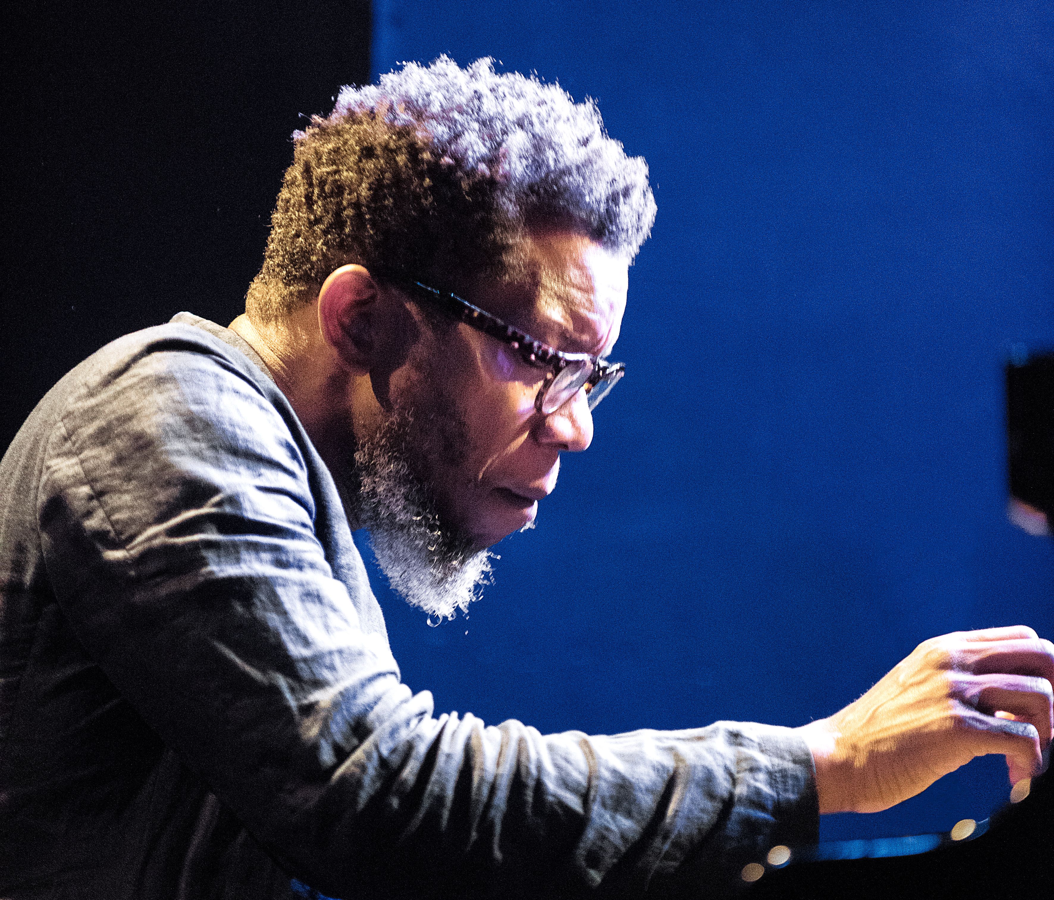 Dass hier noch genug Spielraum für weitere konzeptionelle Anderswelten, die speziellen Piano-Trio Neuerungen reflektierend, gegeben ist, beweist der afro-kubanische in New York residierende Pianist Aruán Ortiz. In seinem Klangkontinuum schwirrt Elementares aus der kubanischen Musiktradition, der klassischen Avantgarde, sonstiger lateinamerikanischer Musikethnien und der Jazz Moderne umher. Ortiz mischt daraus ein höchst persönliches Konzentrat. Indem er Ursprungsszenarien zerlegt, umdeutet, abstrahiert und mit den anderen Stileigenarten in Beziehung setzt. Das folgt einem tiefen Verständnis, großem Respekt für Musik generell und einem wahrhaftigen Musikerfinden im Speziellen. Virtuosität von hochemotionalem Antlitz. Sein aktuelles Trio schafft in seinem Laisser-faire Verständnis für die nötige Kreativität außerordentlichen Phantasiefluss und Freiraum. Kontemplative Bewegungsmuster säumten die ersten Minuten. Rhapsodische Melodieentwicklungen, kommentiert von punktuellen, perkussiven Aktionen rannen ineinander. Im weiteren Verlauf der beiden kontinuierlichen Ereignisbögen tauschten sich Ortiz und Bassist Jones ständig mit der Melodieentwicklung ab. Famose kontrapunktische Verzahnungen, Spiegelungen gingen voran. Horizontale Progressionen, ohne thematische Bündelungen, gehörten zu den Hauptindikatoren des Schaffensprozesses. Harmonisch nuancenreich verfeinert. Unvorhergesehen zog Ortiz diese Faktoren immer aufs Neue zu repetitiven Figuren zusammen. Das zweite prägende Charakteristikum dieser Trio-Musik. Präzise ausgespielt, variabel schattiert. Darauf und dem Wechselspiel mit dem exzellenten Brad Jones, zwischen Ostinati und Walking Bass variierend – mit körperlichem Ton, fußte die Rhythmisierung der Musik. Von hypnotischer Wirkkraft, was eine Verbindung zur afrikanischen Yoruba- Tradition ziehen lässt. Wo blieb hier nun der Beitrag des Schlagzeugers. Ortiz hat eine afroamerikanische Schlagzeugkoryphäe eingeladen: John Betsch. Bekannt für besondere Sensibilität im Interplay und melodisches Gespür. Betsch verfolgte kein periodisches Timekeeping, sondern fächerte die Zeitstrukturen auf. Anhand von kleinteiligen Pattern oder nur mit Sounds. Er umspielte die Repetitionen von Klavier und Bass mit kolorierendem Feinsinn. Drive ständig in der Hinterhand, forciert durch fortwährende Tempowechsel. Auch wusste er seine Konzentration auf Pausen zu verlagern. Betschs punktueller Spielentwurf intensivierte das Spannungsfeld maßgeblich. Bescherte seinen Partnern obendrein zusätzliche Bewegungsfreiheit. Und alle drei sind sich gewahr, dass Selbstentäußerung und Selbstfindung einer aufladenden Phase der Ereignislosigkeit bedürfen.