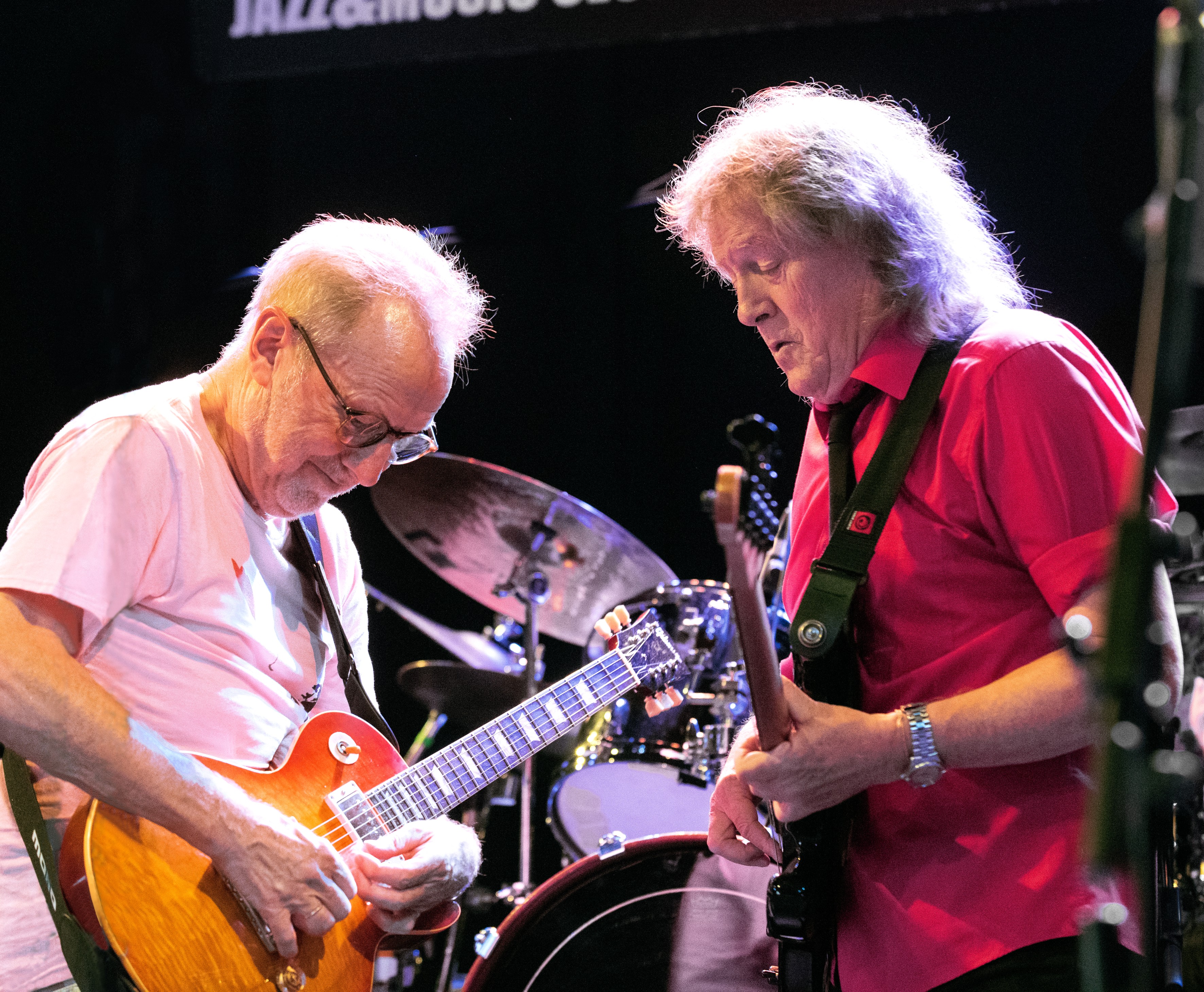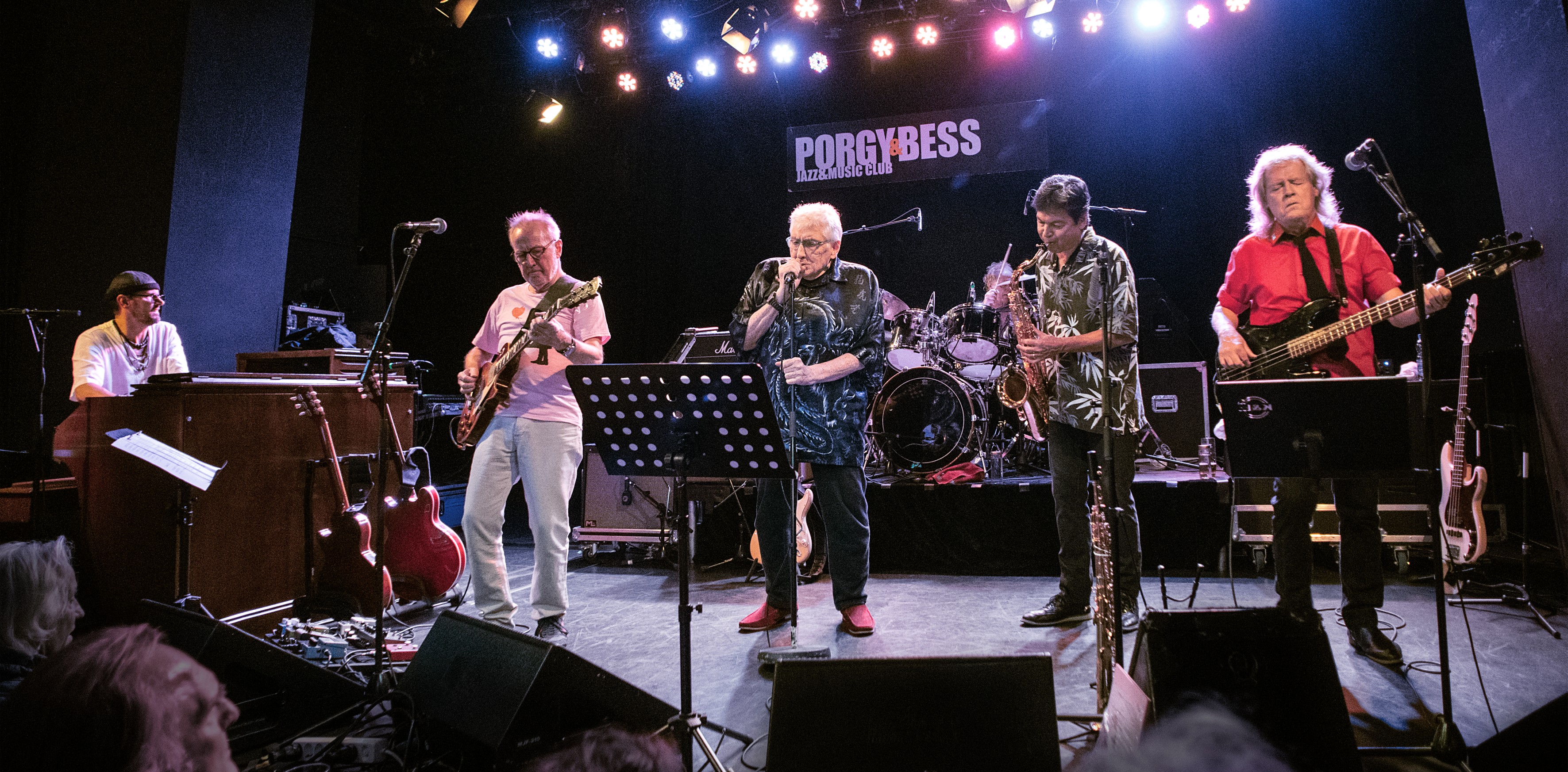 Er variierte fortwährend seine Basslinien, brachte herrliche Off-Beats bzw. kontrapunktische Sequenzen ins Spiel. Von noch mehr inhaltlicher Offenheit und emotionalem Überschwang profitierte die Musik in Colosseum-Klassikern wie u.a. „Walking In The Park“, „Valentine Suite“, „Lost Angeles“. Clempson und Nishikawara hoben mit ihren variationsreichen Improvisationen förmlich ab. Lustvoll brachen sie immer wieder die Funktionsharmonik auf, führten die Rock-Tonalität aus ihrer Enge. Lichterlohe Highlights waren Clempsons atemberaubendes Glissandi-Solo, die Sopransaxophon-Fantasie in bestechender Intonation und überaus jazzbeseeltem Melos, das Duett Farlowes, bei dem er in einer Art „Rock-Scat“ mit den Saxophonisten, diesmal am Tenor, improvisierte Melodielinien austauschte. Respektabel, welch muskulöser Stimme sich der 82-jährige Farlowe, obendrein begnadeter Entertainer, nach wie vor in Besitz wähnt. Hinzu kommt dieses eindringliche Bluesfeeling, ist seinen Kollegen gleichfalls zu bescheinigen, welches die schädeldeckenhebende Version des „Stormy Monday Blues“ durchströmte. Tribut an die schwarzen Erfinder des Blues, eines von Colosseums wichtigen Quellmaterialien. Colosseum pflegen keineswegs einen Legendenstatus. Sie revitalisieren große Werke ihres Songbooks respektive restaurieren ihre Musik für einen würdigen Platz in der Gegenwart. Unter jenem Banner von einst: Freiheit, Gleichberechtigung und künstlerische Selbstbestimmung. Vom Sturm der Entfesselung.