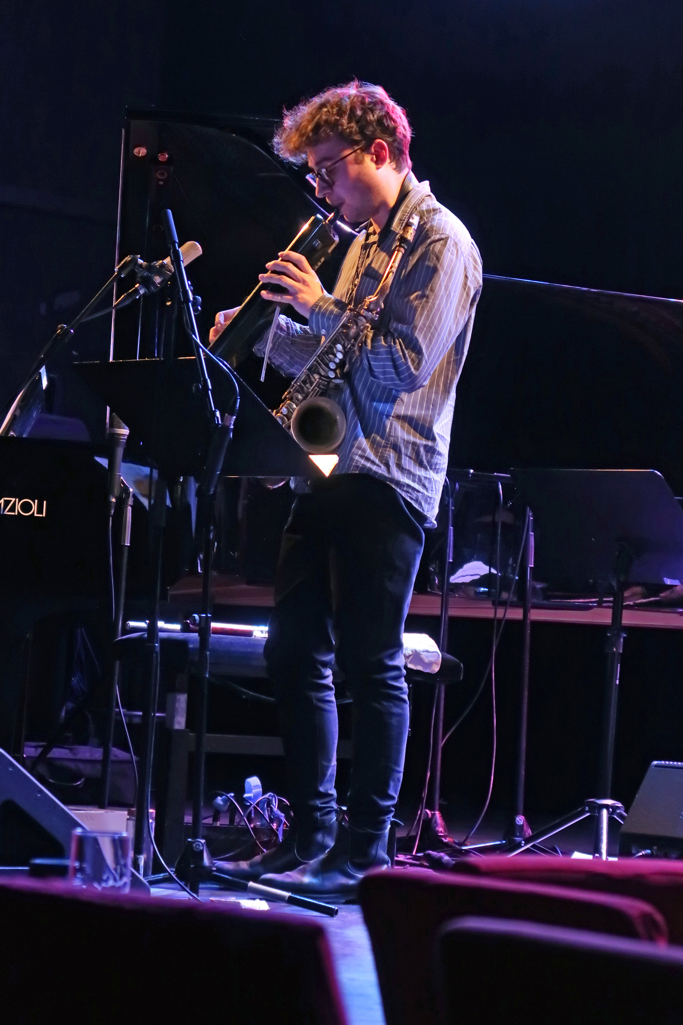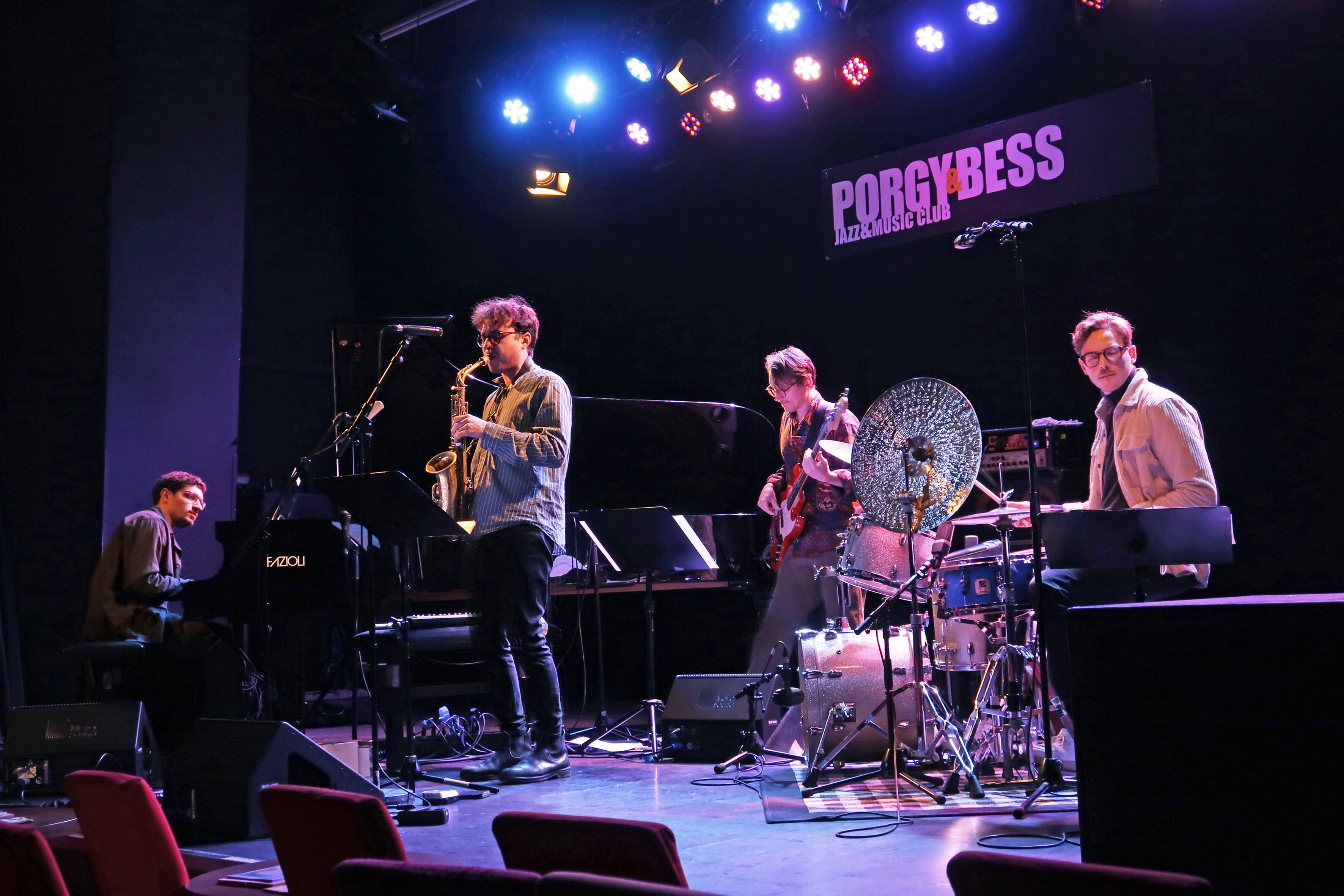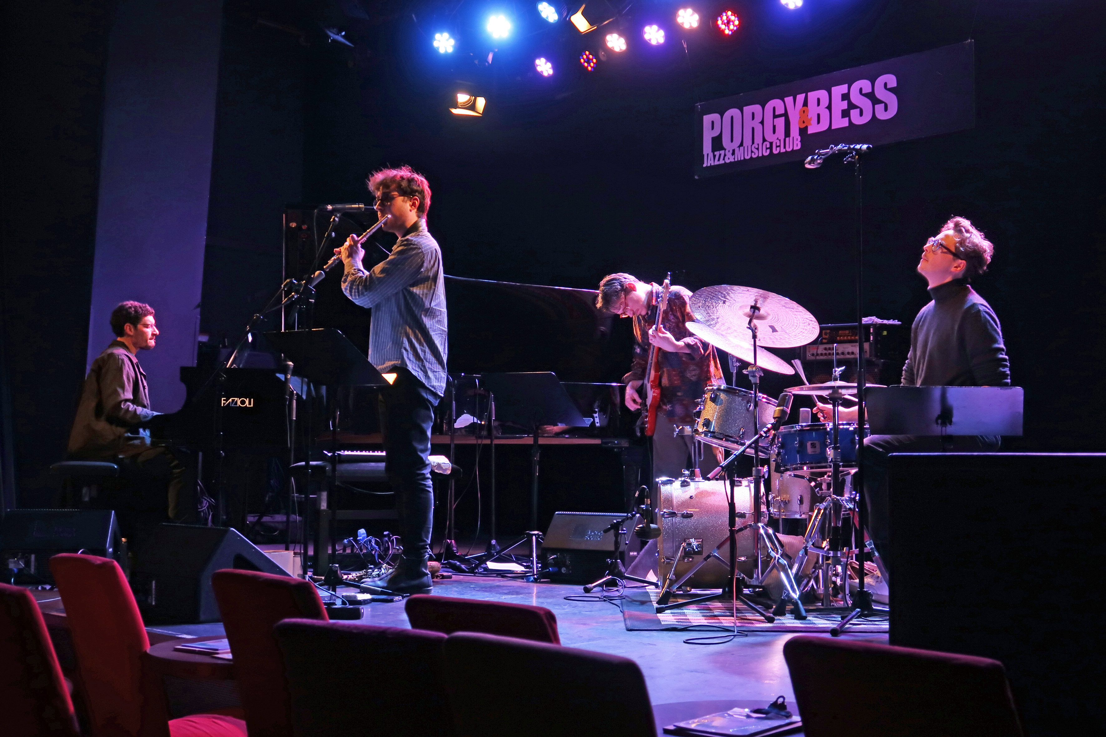 Gleich vorweg, ein Verwandtschaftsverhältnis zu dem großen deutschen Saxophonisten Gerd Dudek(verstarb im Herbst vergangenen Jahres) existiert nicht. Was Gerd und Fabian allerdings in Verwandtschaft setzt, ist beider außergewöhnliches musikalisches Profil. Wie Gerd Dudek ist auch Fabian Dudek(Jahrgang 1995) bereits in jungen Jahren ein zutiefst eigenständiger Stilist und meisterlicher Konzeptionist. Von kindauf mit großem Herz für Jazz, aber auch offenen Ohres für jedwede andere avancierte Musikform. Fabian Dudeks Stern ging vor einigen Jahren so richtig im deutschen Bundesjazzorchester(aka BuJazzO) auf. Seitdem ist er ein leuchtender Kreativkopf des dortigen Jazzlebens, der jetzt folglich auf dem Weg zu globaler Bekanntheit ist. Ansässig in Köln hat er sich mit Kollegen von ebendort, gleichsam auffallend profunde Könner, zum Fabian Dudek Quartet zusammengetan. Dieses positioniert er als weiteren relevanten „Verstärker“ der aktuellen Jazzkultur. Nun erstmals in Wien, an der ersten Jazzclubadresse der Stadt. Zu Beginn stand ein vom Komponisten Morton Feldman inspiriertes Stück, mit den Eigenschaften kleinräumiger rhythmischer Muster, unstrukturierter Zeitfluss, Klangexpansivität, die mittels jazzharmonischer Waghalsigkeit, zwischen Time-Markierung und asymmetrischer Pulsation hin und her springender Motorik sowie improvisatorischer Exzentrik zu changierenden, bewegten Klangflächen montiert wurden. Sofort wurde man gewahr, wie aufregend vielschichtig die Musik gebaut ist. Und hier ergehen sich die Musiker in einem Füllhorn an wunderbaren Ideen. Geplant sind die Strukturen und Texturen mittels komplexer polyphoner Technik - sie funktionieren aber immer unmittelbar verlockend. Partikulare Ereignisaussparungen forcieren zusätzlich den Spannungsgrad.