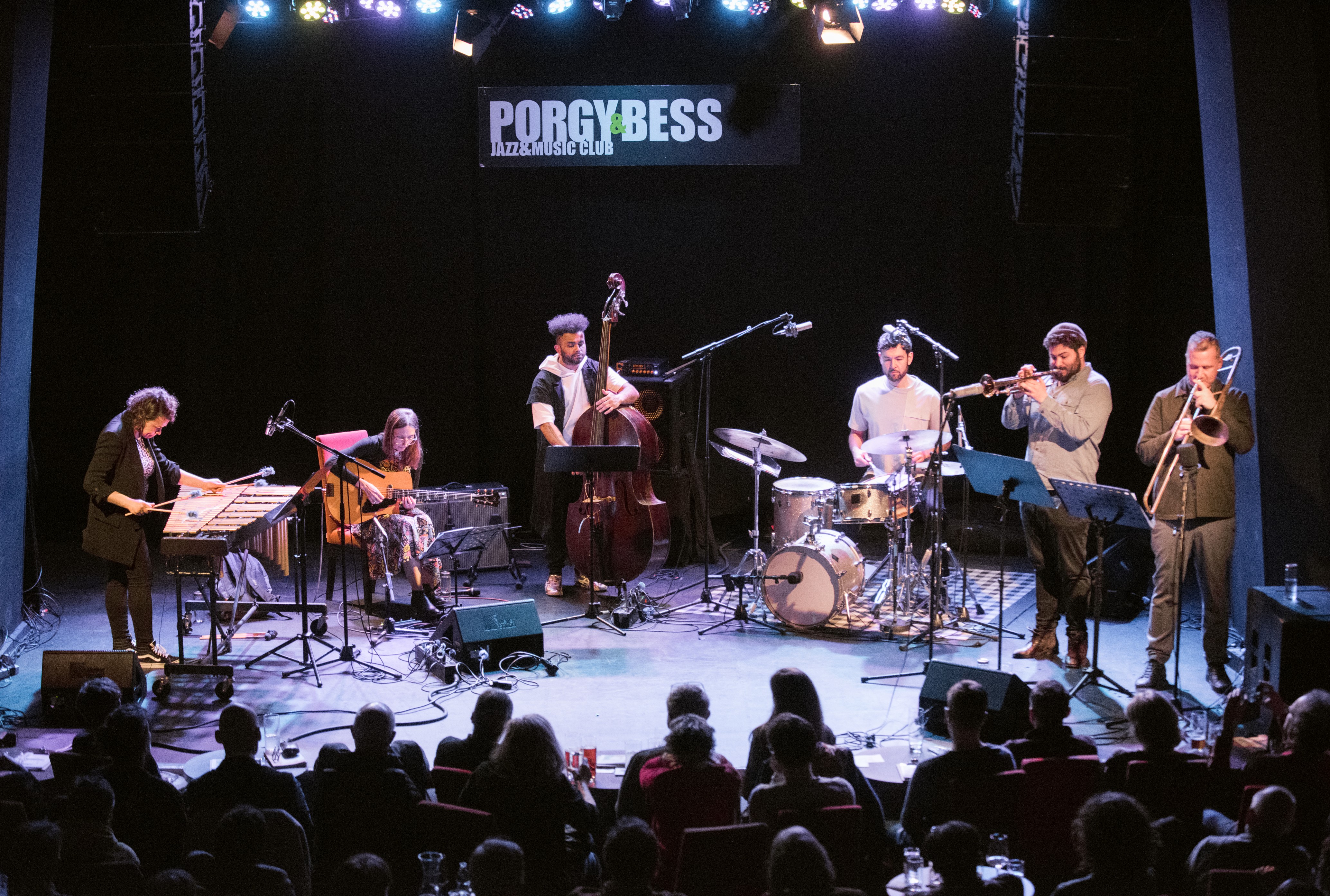 Sie ist derzeit in aller Jazzkritiker/Jazzaficionados Munde. Und ihr Tonträger-Output ist mittlerweile auch guinnessbuchverdächtig. Mary Halvorson jüngster diesbezüglicher Doppelschlag beinhaltet zum einen das „Belladonna“-Projekt, eine Kooperation der Gitarristin mit dem Mivos Streichquartett, und zum anderen das „Amaryllis“ getaufte Sextett - in ungewöhnlicher Besetzung. Mit diesem ist sie derzeit auf Tour. Inhaltlicher Ansatz Halvorsons ist hier ebenfalls das Ineinanderaufgehen von kompositorischer Bindung und extemporierter Weiterführung. Wobei die Erkundungen klangfarblicher Möglichkeiten einen wesentlichen Aspekt darstellen. Da leuchteten ihre intensiven Studien und Kooperationen mit „Universalmusiker“ Anthony Braxton durch. Jedoch sind diesmal die strukturellen Intensionen die sie dem Improvisationsvermögen ihrer PartnerInnen zur Verfügung stellt durchwachsen. Miteinbezogen hat Halverson Praktiken der Jazz Moderne, kammermusikalische Gepflogenheiten, partielle interferierende Klangexplorationen, periodische Jazzrhythmik mit rudimentärem Rock-Touch. Primär steckt jedoch ein relativ konventioneller Bauplan der Kontrapunktik, des Orgelpunktes, modaler Polyphonie und von Quintenzirkelkonstruktionen dahinter. Über weite Strecken greift Sittsamkeit Platz und ein Elegie-Modus beansprucht Dominanz. Dem auf den Fuß folgte eine gewisse Zähflüssigkeit und es fehlt den Kompositionen die strukturoppositionelle Ebene. Da lösten auch Halvorsons gelegentliche „out-tuned“ Akkorde und abstrakte Soundpixel nichts aus. Die sich zudem solistisch sehr zurück hielt. Lediglich in einer freien Duo-Sequenz mit der Vibraphonistin Patricia Brennan trat ihre Brillanz als Improvisatorin hervor. Apropos Vibraphonistin: die war schlichtweg grandios. Nicht nur, dass sie den Partituren nötige Elastizität und Dringlichkeit zuteil werden ließ, war sie auch als Solistin, unter absoluter Beherrschung des Instrumentes, ein überragender Fantasiequell. Harmonische Vernetzungen gingen in ihrem Spiel mit großer innerer Logik in einen rauschenden, melodischen Fluss über. Rhythmisch scharfkantig akzentuiert. Und in enger Verschränkung mit dem beeindruckenden Bassisten Nick Dunston, der sein wendiges, präzises Spiel auf einem muskulösen Ton gründet, verpasste Brennan der Musik rhythmische Statur von wesentlichem Gehalt. Dem Schlagzeuger fehlte es nämlich dahingehend an Initiative. Er nützte vornehmlich die Soli um seine Versiertheit überborden zu lassen. Den beiden Bläsern hörte man unumwunden ihre Fähigkeiten an, ließen diese aber nicht richtig von der Leine. Das Jazzidiom wurde von ihnen zu routiniert gepflegt. Insofern interessant weil Halvorson eine polychrome Klangdenkerin und-finderin ist. Wozu ihre Musik alle Beteiligten dahingehend anzuregen trachtet. Jedoch die Amaryllis ist längstens noch nicht am verblühen. Mary Halvorson hat genügend Humus in ihrem Köcher den sie hinkünftig noch gezielter anwenden wird.
