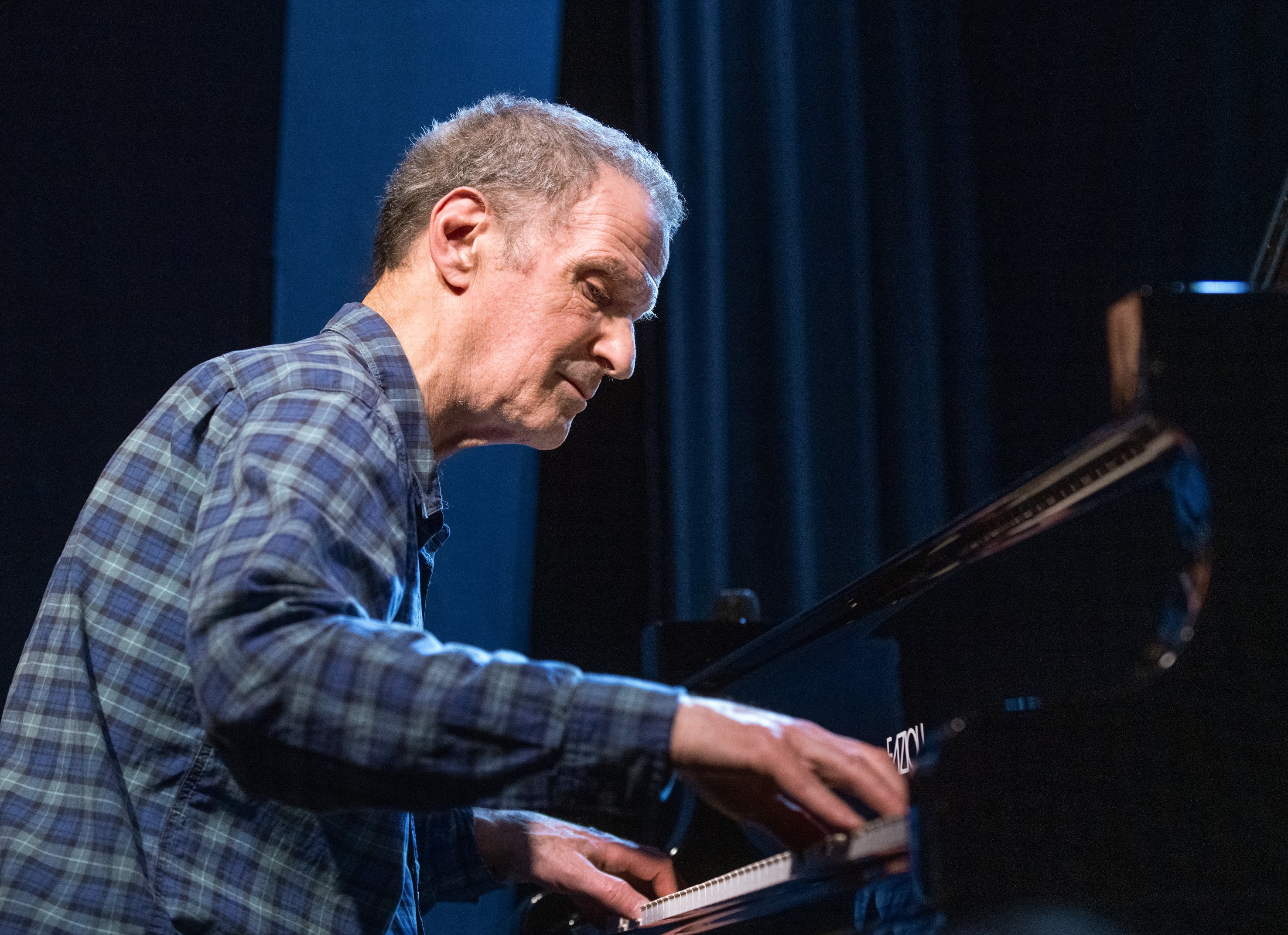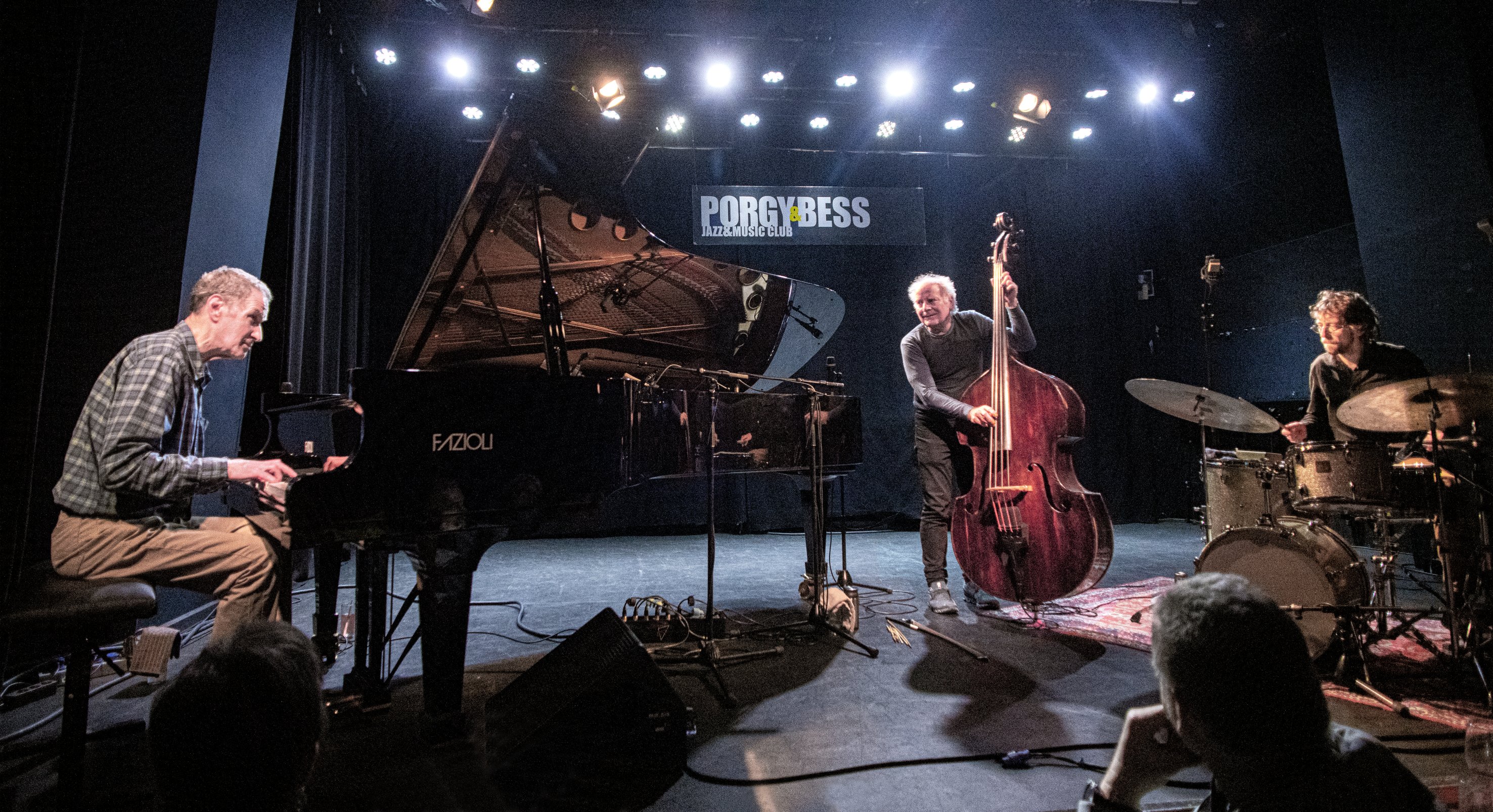 Schön, dass er mit seiner Zurückgezogenheit wieder einmal gebrochen hat. Mit neuem Trio bringt Peter Ponger sich wieder in Spiel. In eben dieses unverkennbar eigengesetzliche einer existenzialistischen Lyrik. Neu bezieht sich auf die Position des Schlagzeugers. Diese Rolle übernahm einer der klangsensibelsten an diesem Instrument, Valentin Duit. Er stammt aus dem reichhaltigen Pool rundum befähigter, multidirektional denkender Jazz-Schlagzeuger hierzulande. Denn am Bass bereichert das Szenario ein Langzeitpartner von Ponger, der, man kann es nicht anders formulieren, einzigartige Peter Herbert. Alle Superlative wurden für ihn ja zur Genüge und berechtigt herbeizitiert. Darum lassen sie es mich so ausdrücken: In seinem Spiel konzentrieren sich die Singularitäten von Charlie Haden, Scott LaFaro und Fernando Grillo, die ihn selbst zu einem Solitär der Kontrabassstilistik reifen ließen. In jeder melodischen, rhythmischen Geste, die Herbert zumeist mit dem spitzohrigen, hochempathisch reagierenden Valentin Duit, grandios dessen punktgenaues „do it“, ersinnt bzw. den vertikalen Verdichtungen, der harmonisch verschlungenen Ausschweifungen Pongers, nachhallend festgeschrieben. Ponger betonte eingangs, dass sie nicht wissen welche Musik erblühen wird. Denn sie schöpfen aus der Leere. Und dieses aus dem Moment Geborene, vermittelt sich in substantieller Art von Anbeginn an. Ponger ist der unermüdliche Anreger. Zunächst repetierte bzw. umspielte der Pianist markant sangbare Motive, die sich ans Jarrettsche Idiom anlehnen ohne diesem zu nahe zu treten. Doch allmählich löste Ponger seinen harmonischen Erfindungsrausch von lenkender Funktionsharmonik, schwenkte in einen rubato-Flow um, verpasste seinen Pointilismen, Blöcken, Flächen kantige Konturen. Gruppierte sie, wie man es von ihm noch nicht gehört hatte, vertrackt und rhythmisch pulsierend – mit offener Handhabe. Texturwallungen mit Mehrdeutigkeit. Darin vibriert die Jazz Moderne, gleichsam Referenzpunkte zur europäischen Romantik, speziell Brahms und die Mendelssohn-Bartholdys (Fanny & Felix). Duit fragmentierte Rhythmen, schichtete sie in losen Schüttungen, sprengte deren Periodizität, dann und wann „In Time“ versetzt, ordnete sie prinzipiell jedoch in elastischem Klangfarbenspiel. Mit all seiner allumfassenden Meisterschaft knüpfte Peter Herbert die Bande zwischen kinetischer und „singender“ Energie.